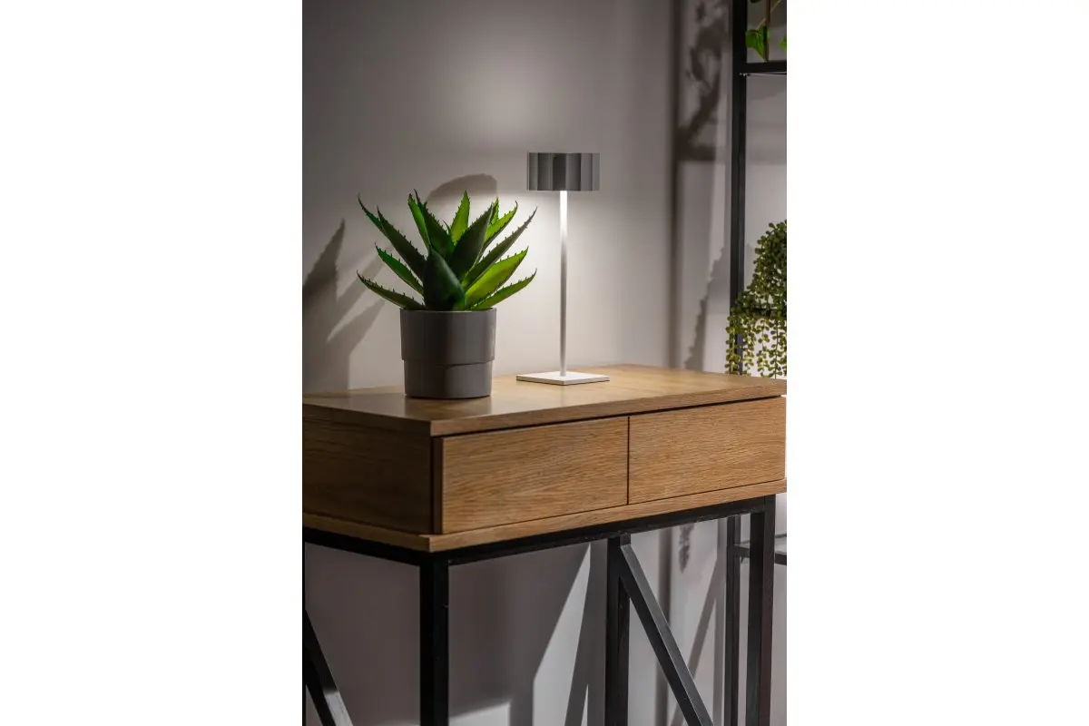 Veioza AZELIA de la GTV este o soluție mobilă de iluminare, creată pentru birou, noptieră sau orice spațiu unde ai nevoie de lumină suplimentară fără fire și cabluri. Cu o baterie integrată de 4000 mAh, oferă ore întregi de funcționare fără a fi conectată la priză, fiind ușor de mutat oriunde ai nevoie.