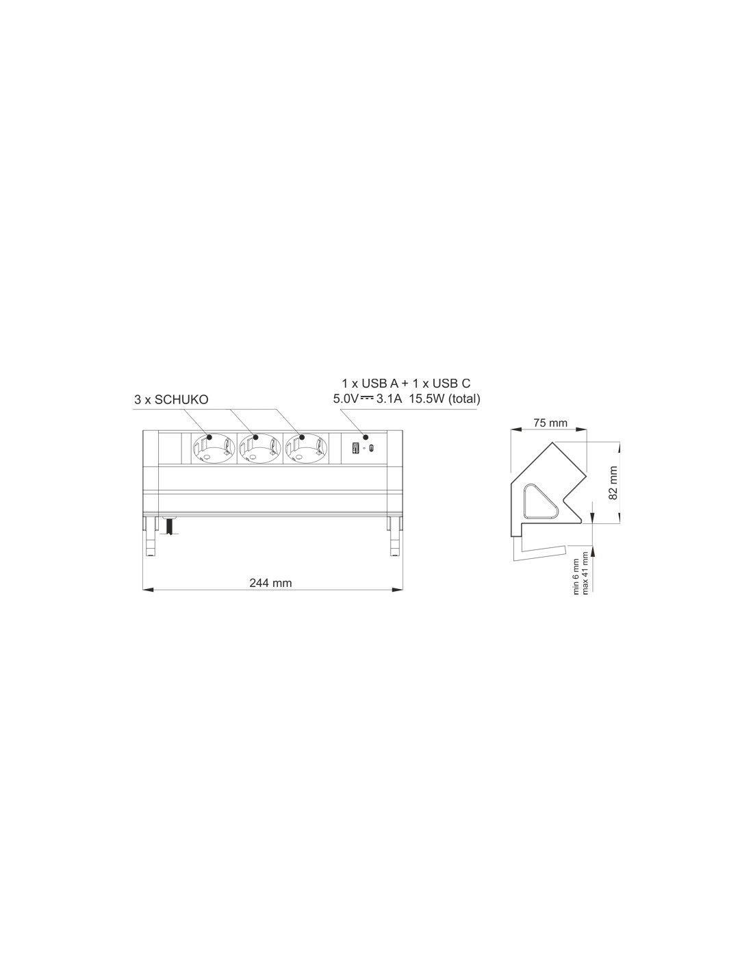 Priza pentru birou DESKBOX este soluția practică pentru spațiile de lucru unde ai nevoie de acces rapid la alimentare și încărcare USB, fără cabluri împrăștiate pe birou. Se montează direct pe suprafața blatului și oferă 3 prize Schuko + 2 porturi USB (A și C), într-un format compact și ușor de integrat în orice birou.