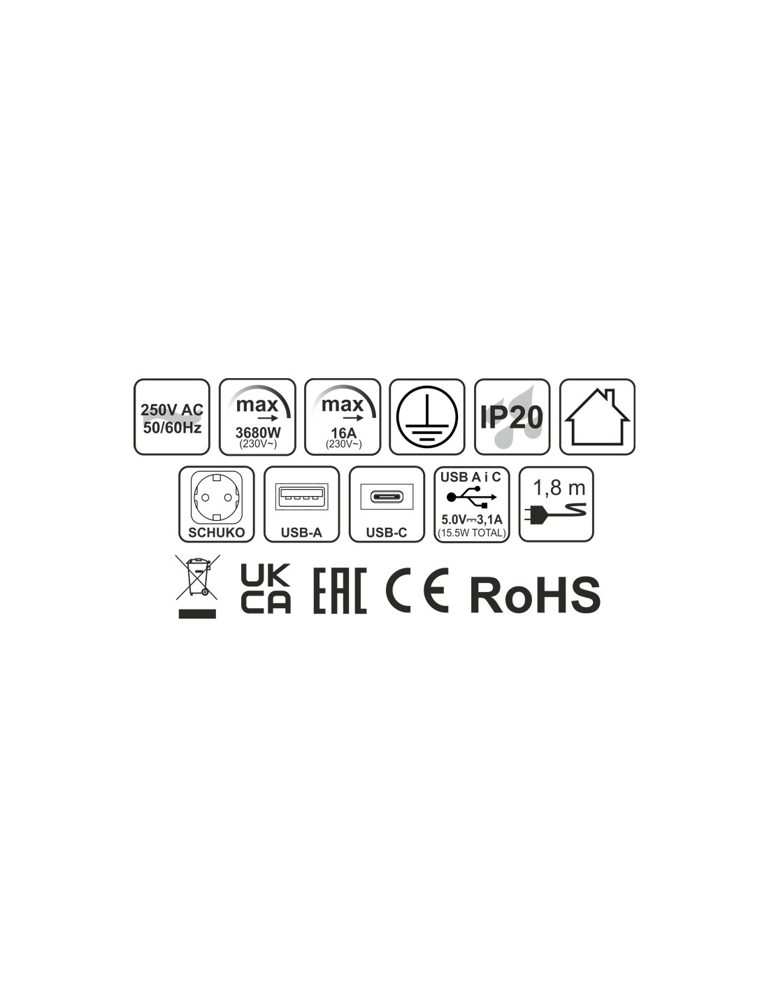 | USB | 1 x USB A (5V / 2,4A), 1 x USB C (5V / 2,4A) |