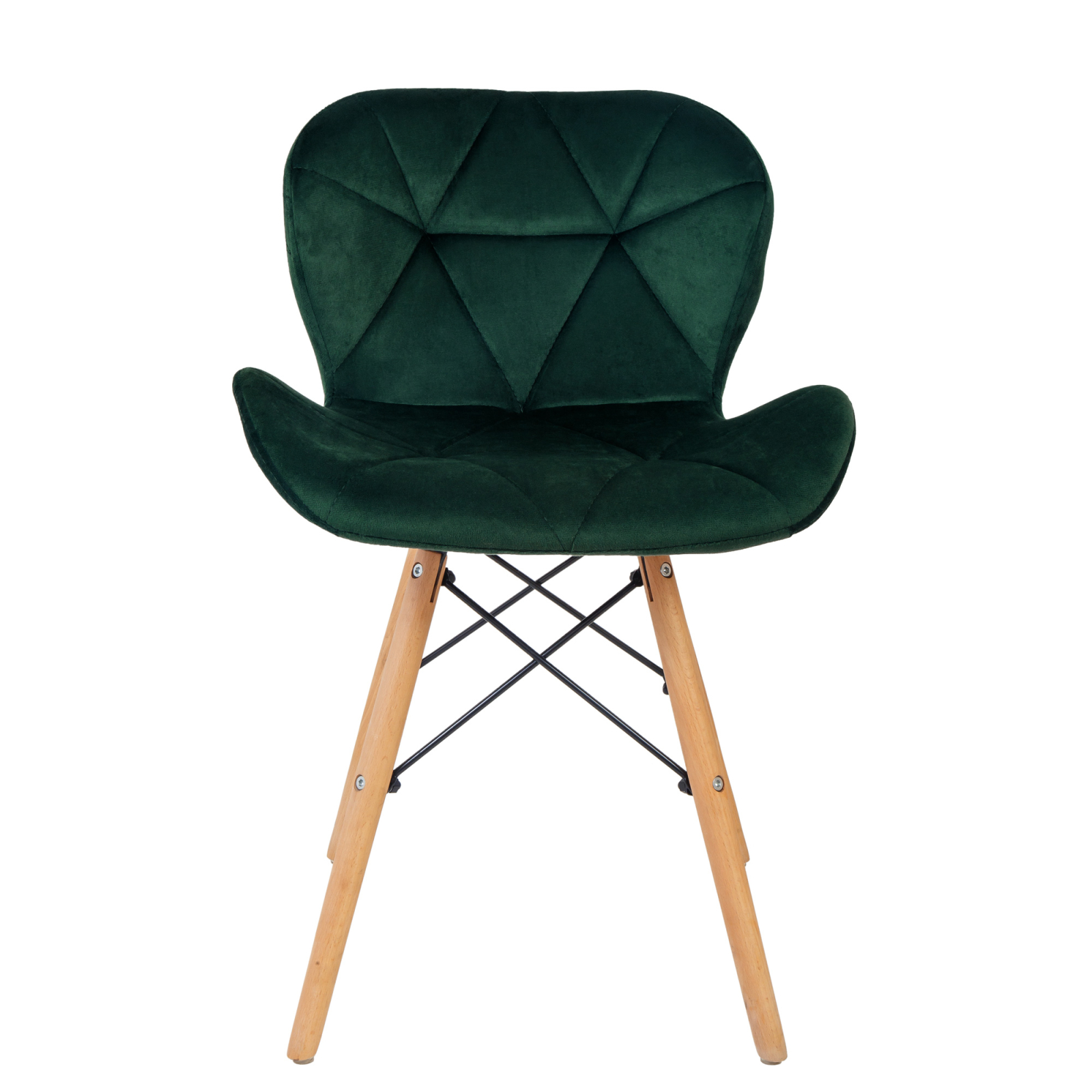 Scaunul din catifea verde cu cadru de lemn este alegerea potrivită dacă vrei să aduci un plus de confort și un aspect plăcut în bucătărie, dining sau chiar într-o cafenea.